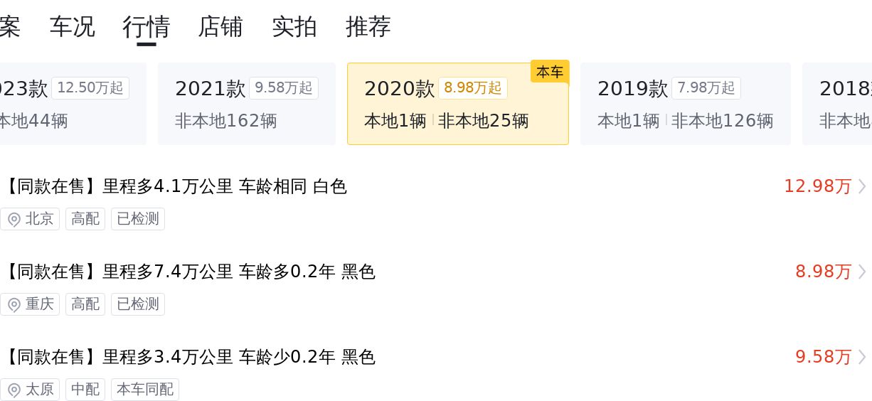 车价会受到很多因素的影响,包括车辆的状况、里程数、年份以及市场需求等等。我们为您提供了同款车型的不同车况和不同价格的参考,以便您更好地了解这款车的市场价格。