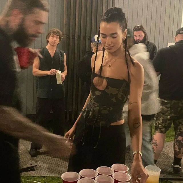 和贝拉同为千禧复古接班人的Dua Lipa也没错过迷彩裤,上身简单搭配迷你小吊带,配上头戴式耳机更有复古的感觉。