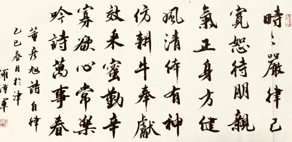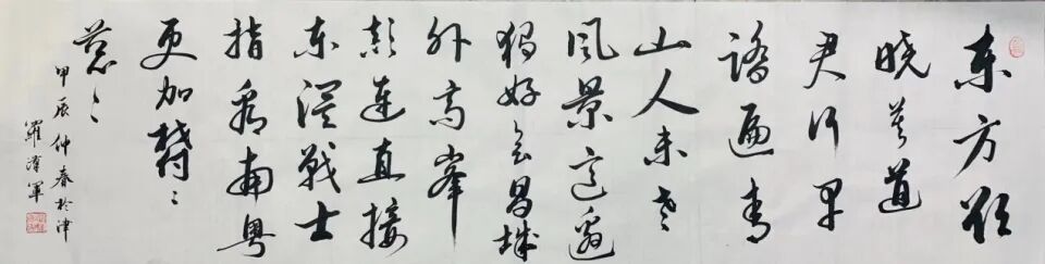 罗汉军自幼酷爱书法,在工作之余,一直笔耕不辍,为寻觅书法艺术之真谛,曾向天津市书法协会原副主席曹柏崑,天津书画家朱兆煜请教书法艺术。利用业余时间临王羲之、赵孟頫、启功之书法作品。结合工作实际十年如一日坚韧、执着、百折不挠地探索属于自己的艺术语言,用独特的艺术语言传达着对生命的独特领悟、观点和气质,让内心与世界进行对话。用自己创新出来的书法语言为人民解惑答疑、排忧解难。书法的灵魂是我国优秀的传统文化,在工作中结合书法及优秀的传统文化开展预防电信诈骗诈骗以及化解矛盾纠纷,实现德治与法治的有机融合。