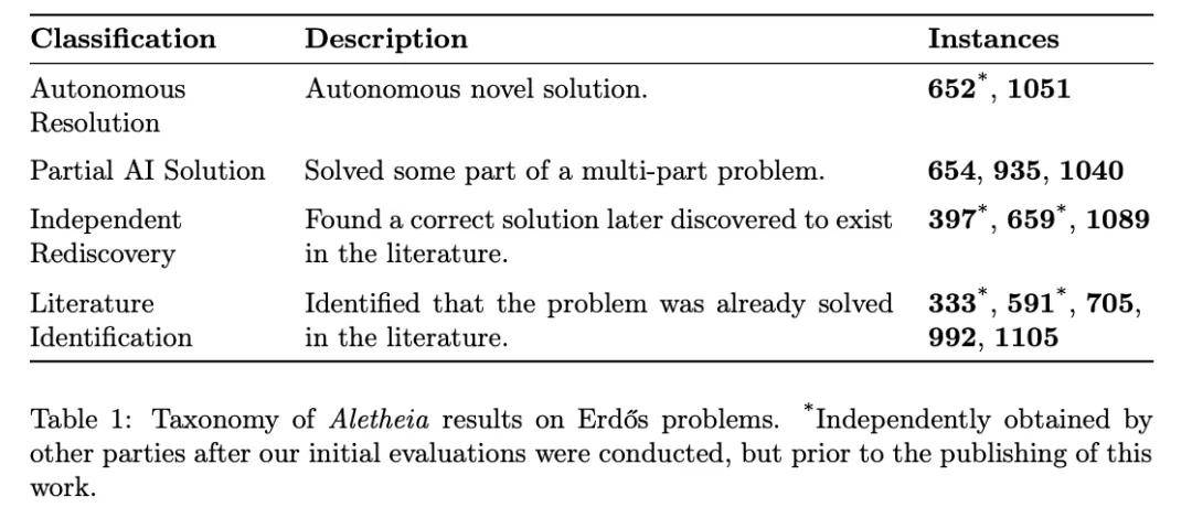 2、部分由 AI 解决。对于这些包含多个子问题的复杂问题,Aletheia 找到了其中一个子问题的首个正确解决方案。其中包括 Erdős-654、Erdős-935 和 Erdős-1040。