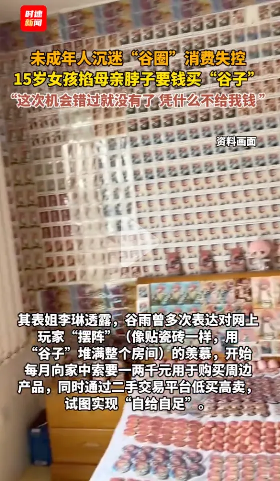 山东一个15岁的女生,因为要购买“谷子”,掐住母亲的脖子嘶吼着要钱,哭喊道:这次机会错过就没有了,凭什么不给我钱。