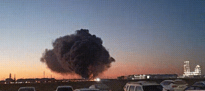 导致车辆瞬间发生爆炸,产生一个巨大的黑色蘑菇云。
