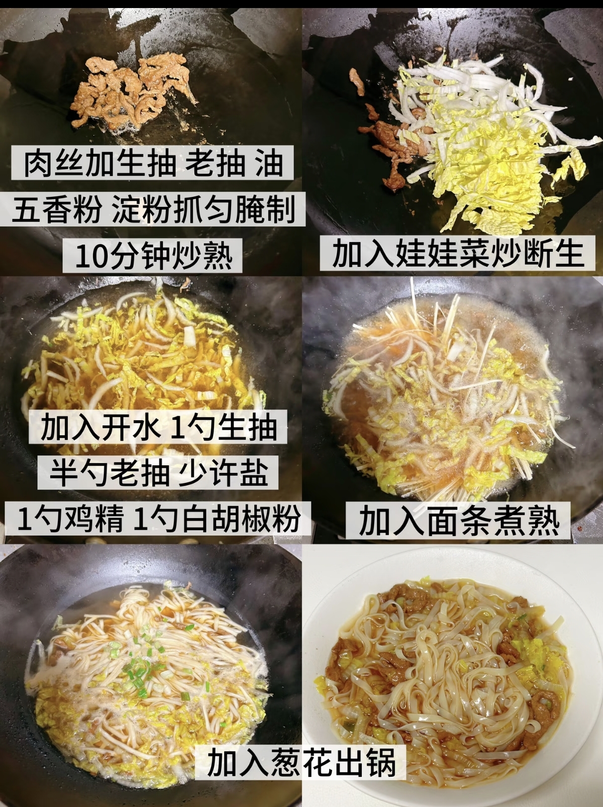 将滚烫的汤汁连同肉丝和娃娃菜一起,豪迈地浇在碗底的面条上。瞬间,热气升腾,面条吸饱了鲜美的汤汁,娃娃菜晶莹剔透,肉丝滑嫩诱人。迫不及待地挑起一筷子,面条劲道弹牙,裹挟着汤汁的鲜香;娃娃菜入口即化,清甜解腻;肉丝滑嫩多汁,越嚼越香。喝一口汤,暖流瞬间传遍全身,那是家的味道,是幸福的味道。