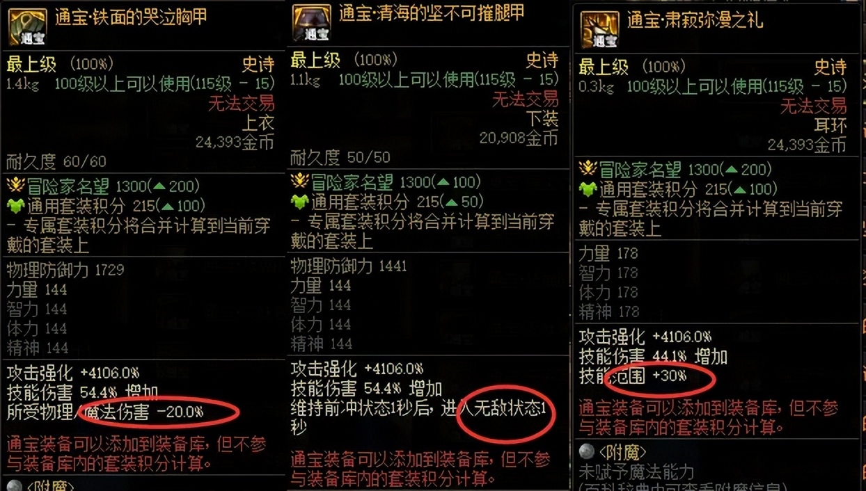 不过“通宝装备”也有弊端,那就是它的伤害不如同品级套装史诗,大概低了3%左右。