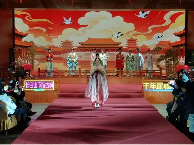 随着悠扬典雅的国风音乐响起,模特们身着国风华服缓缓登场,拉开了“华服礼赞秀”的序幕。这不仅是一场简单的传统服饰走秀,更是长白深度融合中华传统文化与地域特色文化的创新展示。