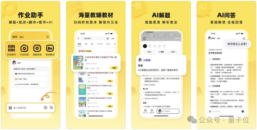 快对AI是作业帮旗下作业辅导产品,背靠作业帮多年积累的题库资源和用户基础,具备双重优势。不仅提供答案,更注重解题思路和知识点讲解,通过AI实现“个性化辅导”,在家长和学生中建立强认知。