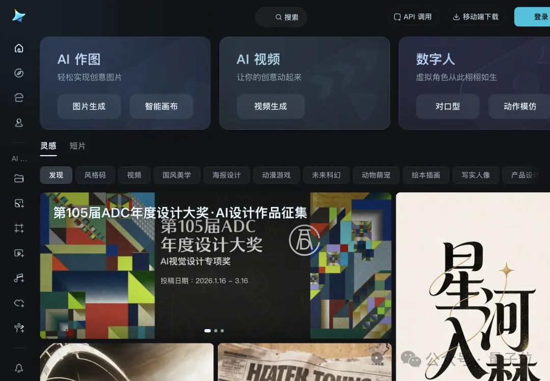 星流是Lovart的国内版本,通过自然语言一句话即可完成从创意构思到设计交付的全流程,支持图像、视频、3D等多模态内容一站式生成。具备无限画布、智能协作编辑、任务自动拆解能力,让AI真正管理创作流程。