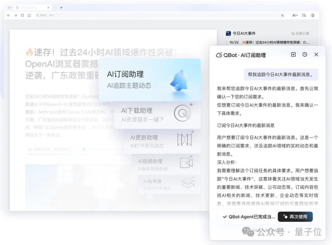 QQ浏览器通过QBot将Agent能力深度嵌入日常浏览场景,主动理解用户意图、执行跨网站任务。依托腾讯生态和海量用户基础,实现从“信息展示”向“主动执行”的转型,引领浏览器存量市场AI化升级。
