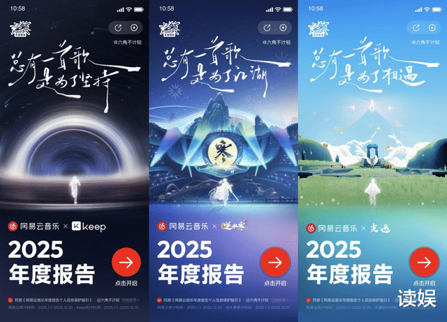 今年网易云音乐年度听歌报告首创“联合年度报告”,携手keep、逆水寒、光遇、阴阳师、魔兽世界、炉石传说等知名平台,融合运动、游戏等与音乐息息相关的场景,为用户更深度展现这一年中独特的情感记忆体验。