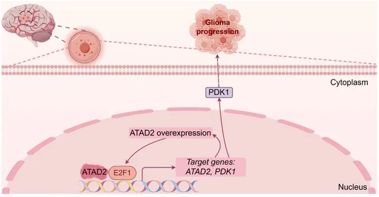 综上所述,本研究不仅确立了CTARS作为胶质瘤独立预后标志物的价值,更揭示了ATAD2通过与E2F1协同激活PDK1,从而驱动胶质瘤恶性进展的新机制(图1),为这一难治性肿瘤的靶向治疗提供了新的理论依据。