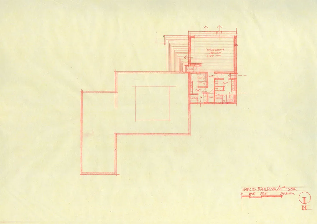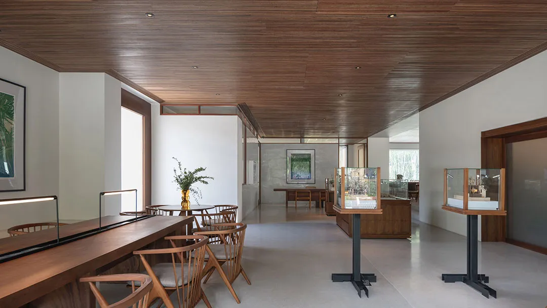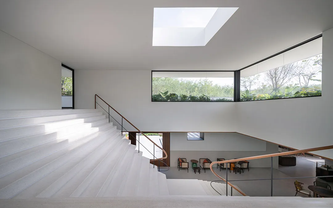 ▲ 内部装饰采用白色墙壁和木制天花板根据Villa Qabalah住宅开发项目的其他计划,公共中心顶部设计有许多种植箱和树木,由社区居民来负责维护。工作室表示:“屋顶的种植箱将作为有机的隔热工具和太阳能过滤器,享受全年热带雨水,同时为社区提供绿色遮荫、蒸散冷却和储水功能。”