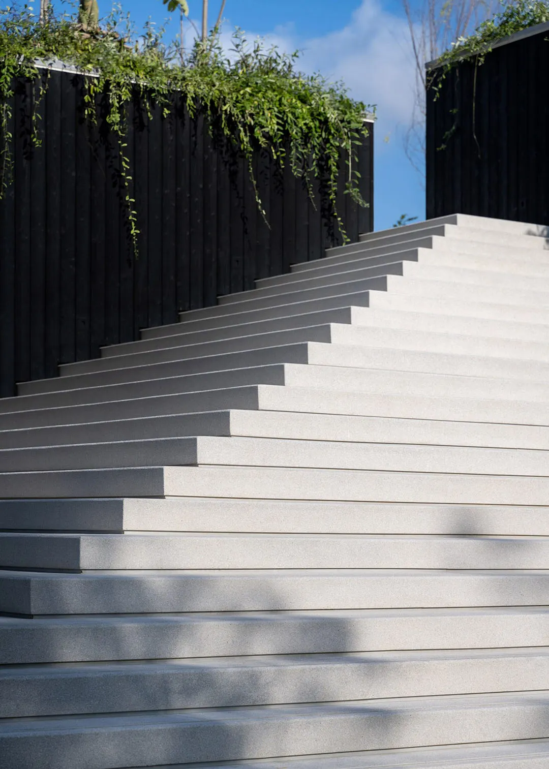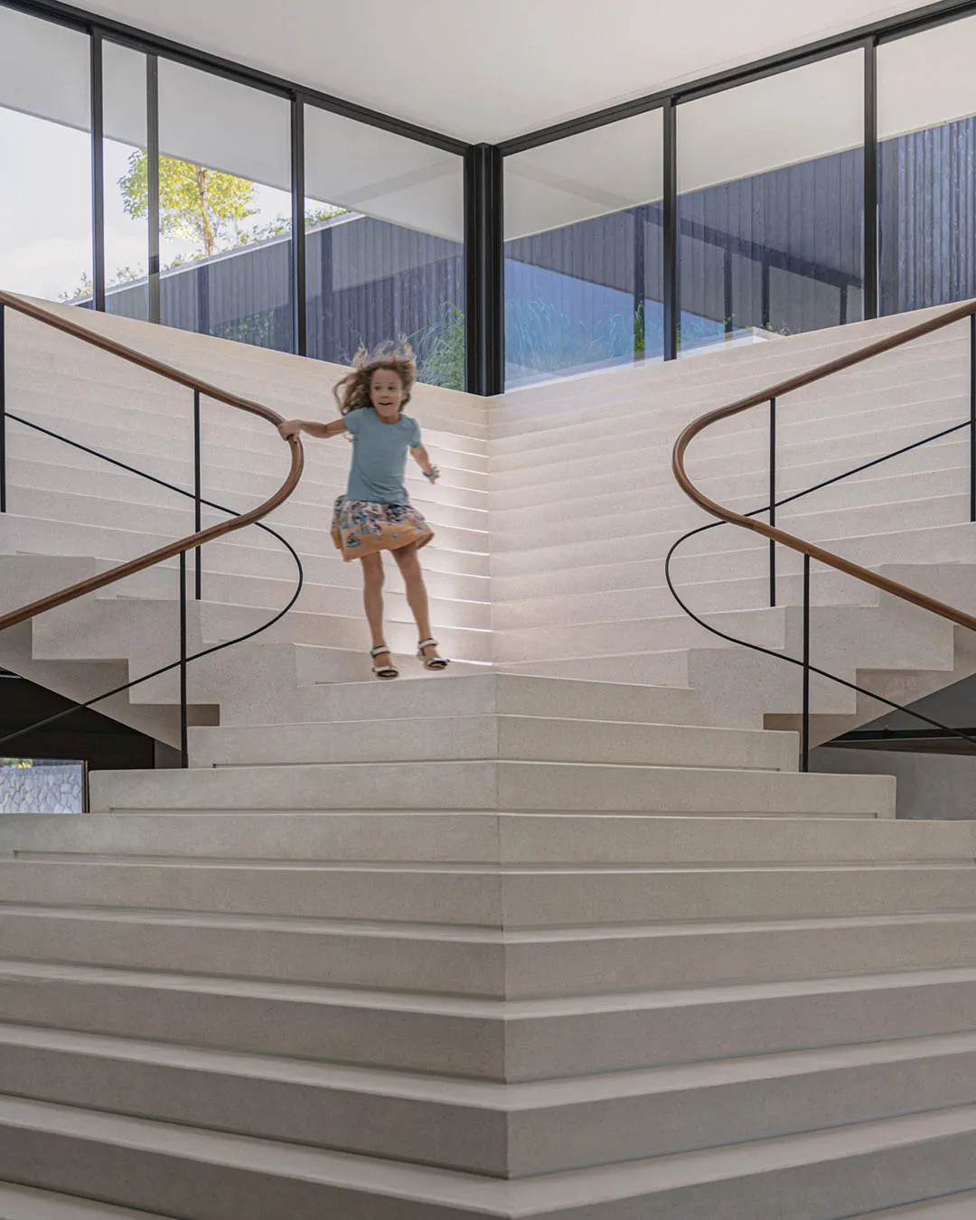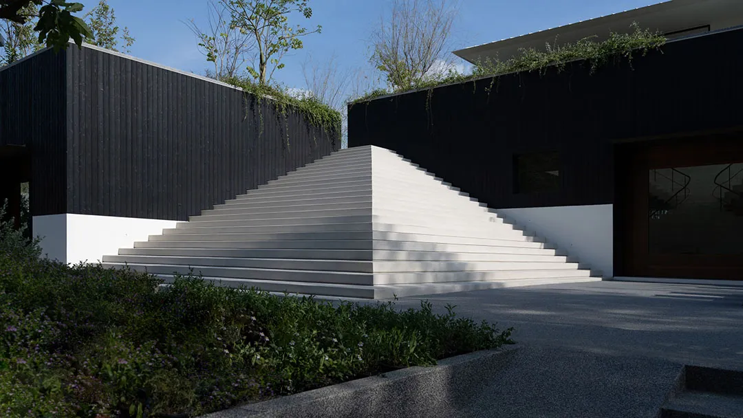 ▲ 公共中心内的雕塑感楼梯设计与外部楼梯相呼应Locomotive工作室表示,这次的项目设计是对常规的住宅开发价值观的一次挑战,它不再是封闭的空间,而是开放式交互区域。项目由三个相交的街区组成,分别在角落处相交,形成 L 形空间,用于遮蔽花园、高架露台和阶梯式座位区。