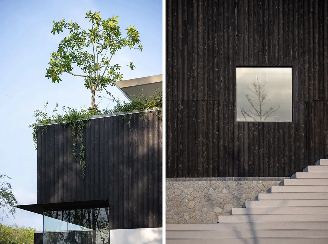 ▲ Tree O'Clock项目的室外主材由石头和被炭化的木材组成除了提供露天座位区,中央楼梯还通向一个屋顶露台和一个瑜伽工作室,在那里人们可以俯瞰开发区和附近的森林。Locomotive工作室在设计内部空间时,除了设计意向的特定功能,也考虑了社区不断变化的需求,以尽可能让空间为社区服务。包括备选入口和通道、露天剧场式楼梯、可分割的空间和家具布局这些元素都有利于公共空间的常规使用和有效再利用。室内外互动的规划激发了社会联系,丰富了归属感。