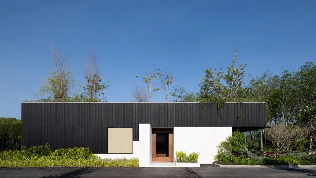 ▲ 社区中心顶部设计有一个屋顶花园从外部环境来看,公共中心底部采用粗石头和白色抹灰,上层则采用垂直的黑色木板,三个建筑体量因为丰富的外立面设计显得非常活泼。从内部设计角度,空间的灵活性体现在简约的白墙面饰和木质天花板上,人们通过全高度的窗户可以俯瞰周围的花园。