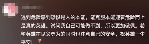 有不少网友在视频下边称赞“勺子哥”的壮举,因为遇到危险躲避时一个人的本能,所以衬得“勺子哥”的行为更加难得。