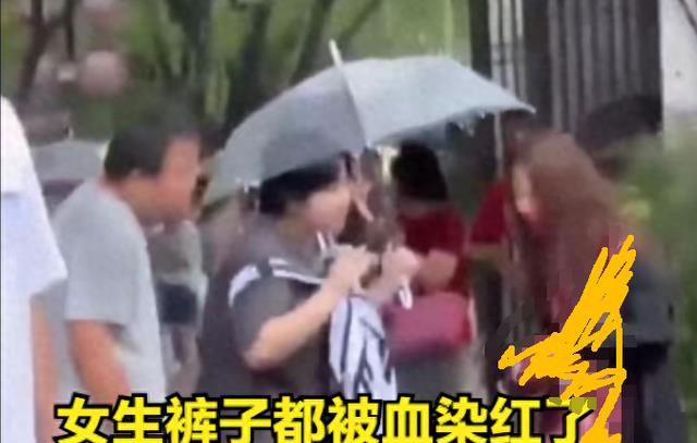 从照片中可以看出当时受伤的女生被刺了不止一刀,身上的白衣服白裤子衣服裤子都沾上了大量的鲜血,整个人十分惊恐的站在雨中。