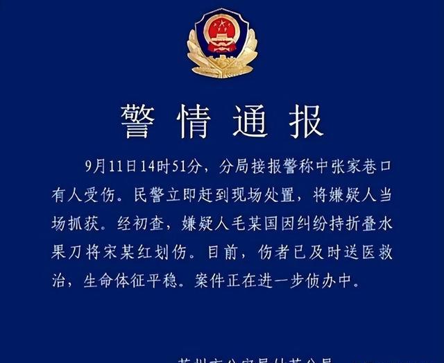 光明网2024-09-11 19:14《苏州警方通报“一嫌疑人因纠纷,持水果刀划伤他人”:伤者已送医》