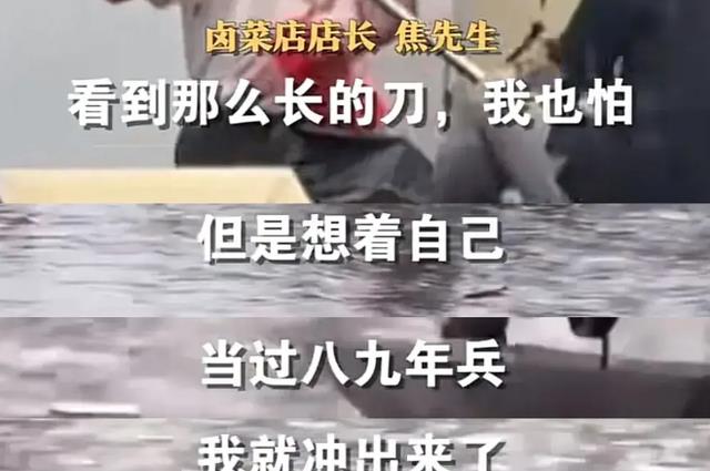 而后焦先生表示这时自己身为退伍军人应该做的,而且当时现场不仅只有自己一个人,在自己出去见义勇为之后,店里的其他小哥也挺身而出一起。