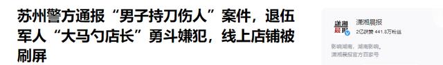 潇湘晨报2024-09-11 22:33《苏州警方通报“男子持刀伤人”案件,退伍军人“大马勺店长”勇斗嫌犯,线上店铺被刷屏》