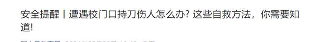 信息来源:同心县教育局 2024年05月20日 18:48《安全提醒丨遭遇校门口持刀伤人怎么办? 这些自救方法,你需要知道!》