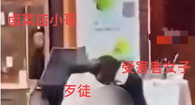正当大家都惊慌失措的时候,一名厨师装扮的男子手持一把大铁勺挺身而出,成功击退了嫌疑人还用铁勺救下受伤的女子。