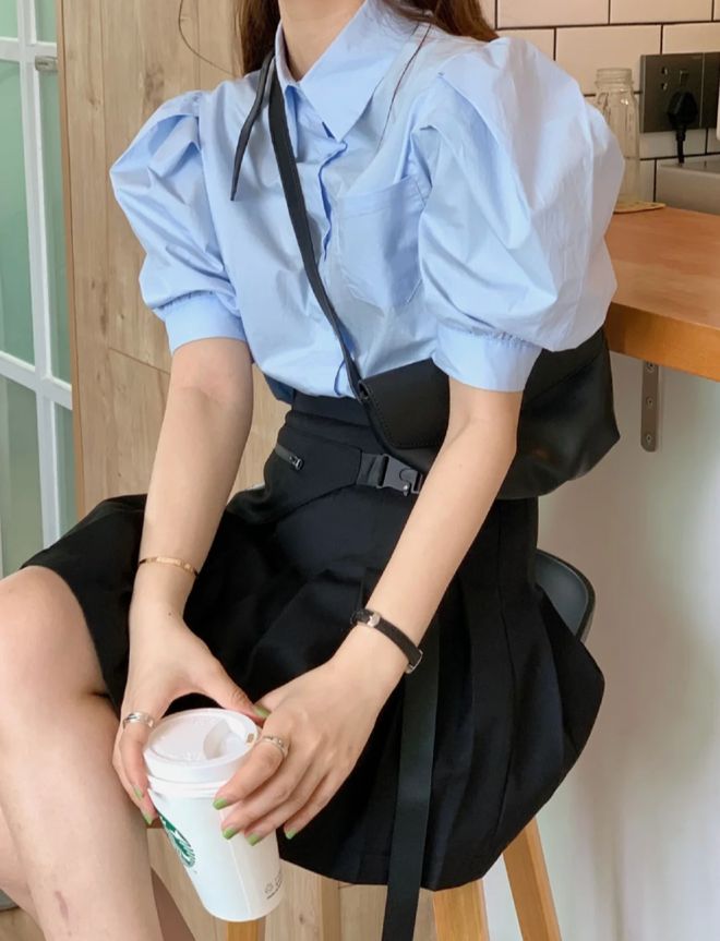 想要一秒修正头身比,可以选择泡泡袖衬衫、微微垫肩和面料硬挺的衬衫,整个人看起来会精神很多。