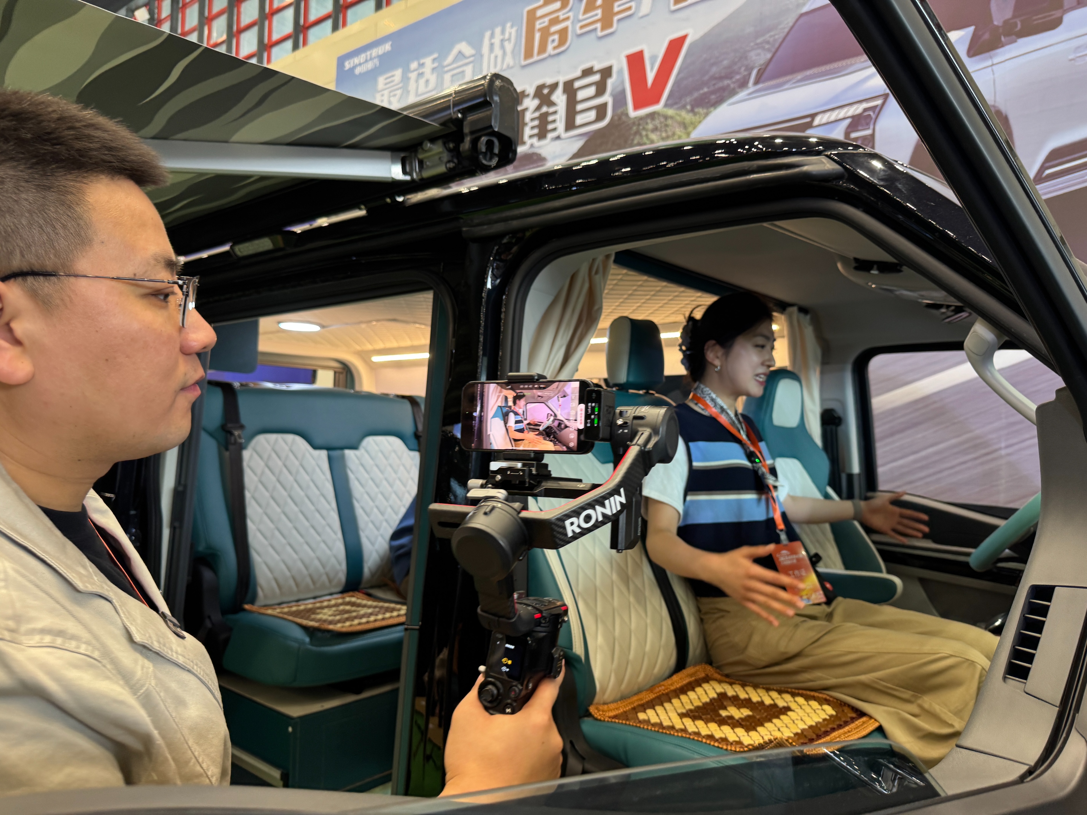 诠释“移动生活”新可能展会现场,中国重汽轻型汽车展台以“车轮上的家”为设计理念,搭建了涵盖城市物流、旅居露营、商务休闲等场景的实景体验区。