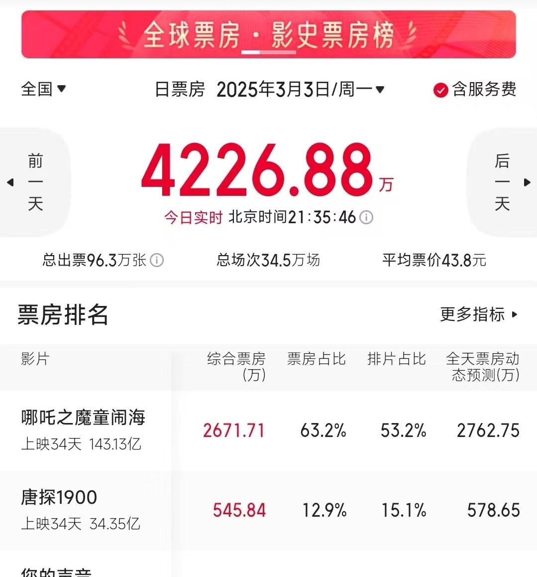 电影市场的规律也制约着《哪吒2》的票房增长。档期红利消退后,工作日票房下滑是普遍现象,尤其对于动画电影来说,家庭观众的观影时间更加受限。此外,高排片低上座率的现象也值得关注,虽然维持了较高的排片占比,但实际上座率的下降表明观众的观影热情正在减退。如何平衡排片与上座率,提高影院的运营效率,是电影市场需要解决的普遍问题。
