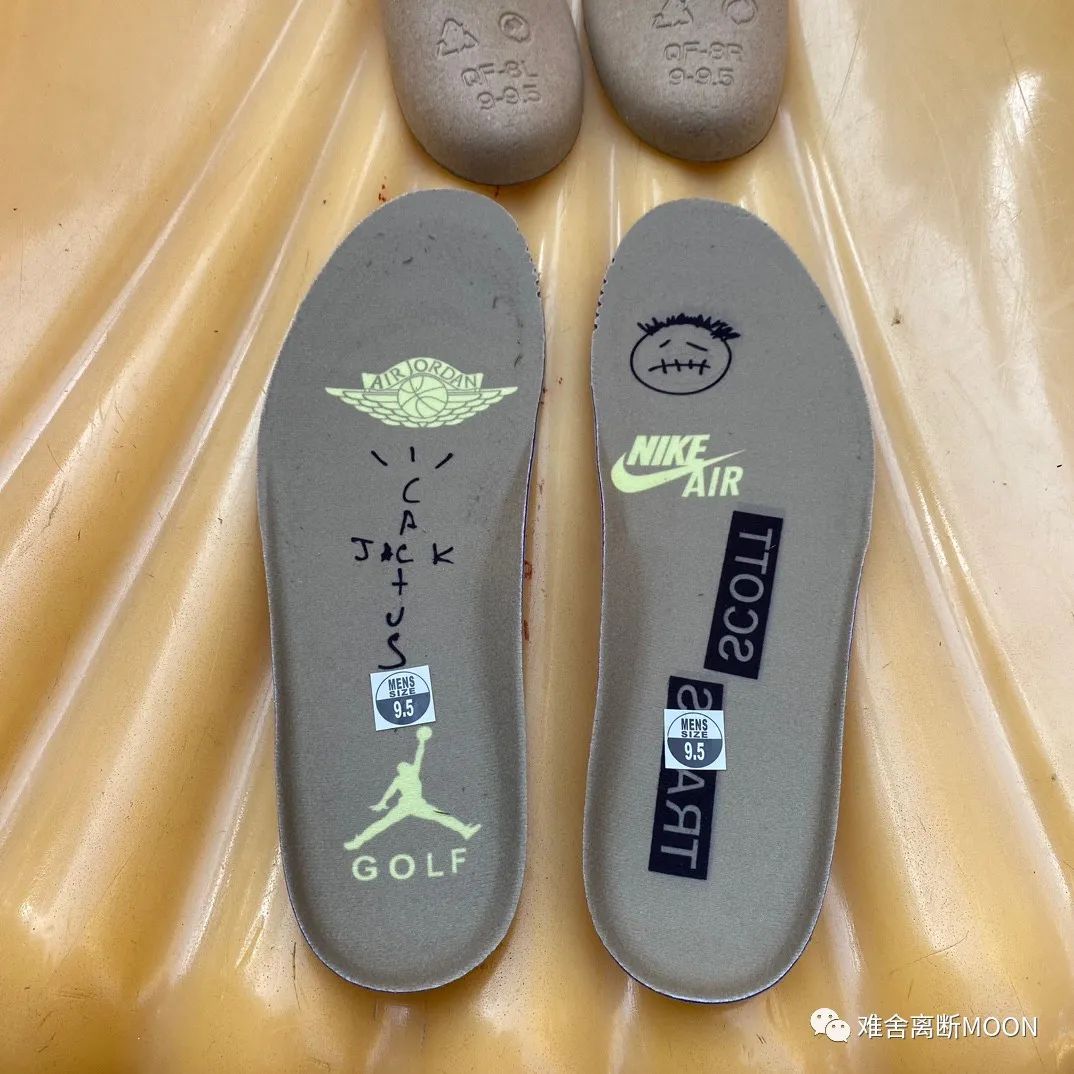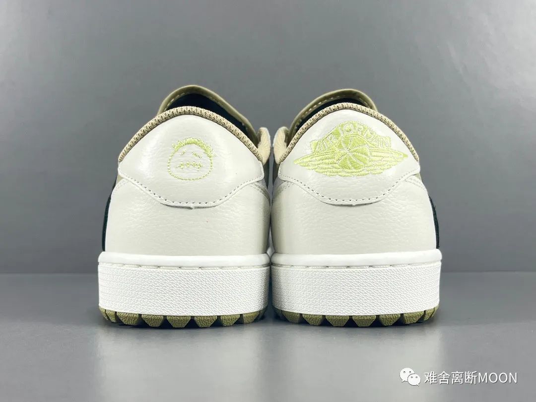 这一次双方以高尔夫鞋型为蓝本,打造了这一 Travis Scott x Air Jordan 1 Low Golf。正如去年爆料图,除了大底改为高尔夫球底,上面其实和正常AJ1 low没有区别。