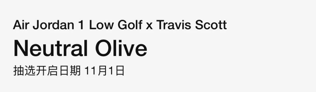 话说话来,你们觉得最好看 Travis Scott 联名鞋款是哪一双呢? Travis Scott x Air Jordan 1 Low Golf “Olive”货号:FZ3124-200发售日期:10 月 13 日(海外)/ 11 月 1 日(SNKRS 中国)发售价格:¥1299 元