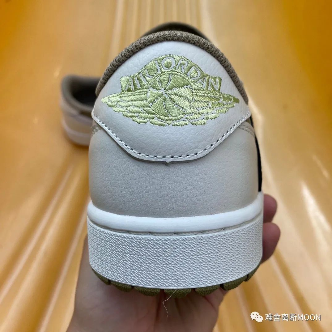 全新的Travis Scott x Air Jordan 1 Low Golf鞋身以麂皮与皮革材质拼接呈现,整体配色灵感还原了此前倒钩3.0的设计,采用橄榄绿为主色调,搭配米白色鞋身框架呈现。