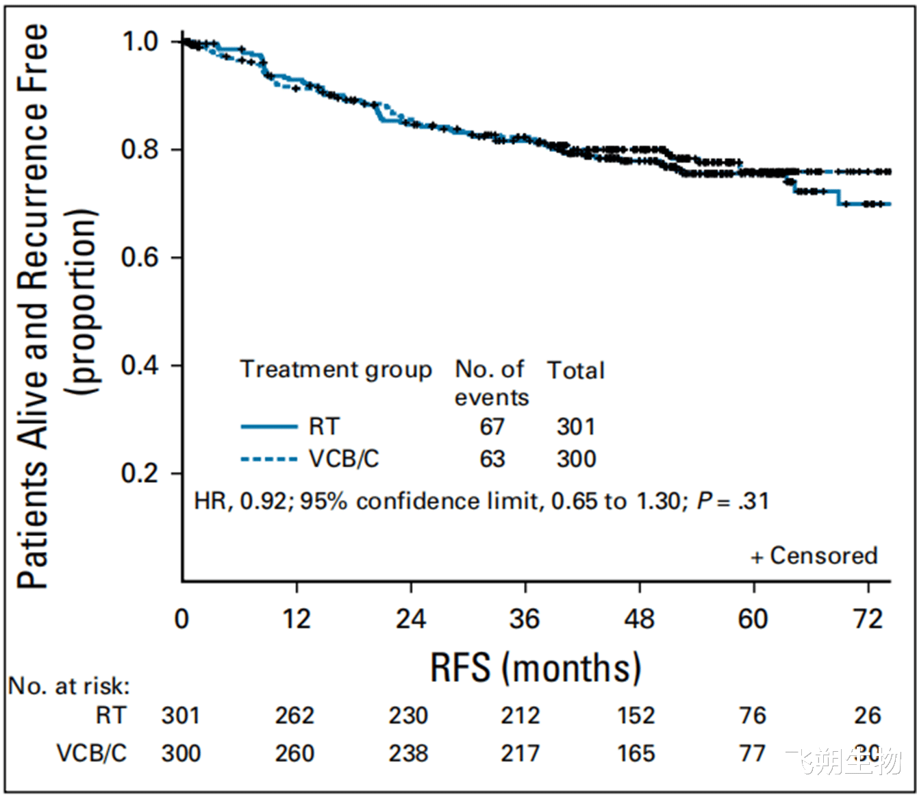 意向性治疗分析显示的无复发生存期按随机治疗分组[5]