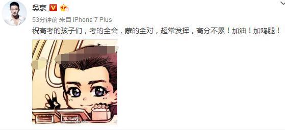吴京:祝高考的孩子们,考的全会,蒙的全对,超常发挥,高分不累!加油!加鸡腿!