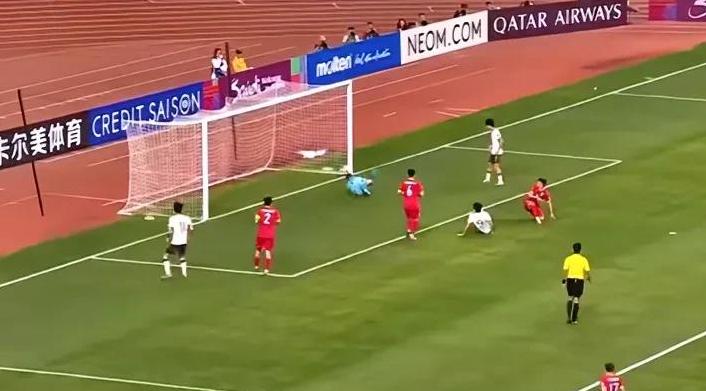 接下来,中国队后防线的另一次失误几乎送上了乌龙助攻,幸好门将及时反应,将球扑出底线。