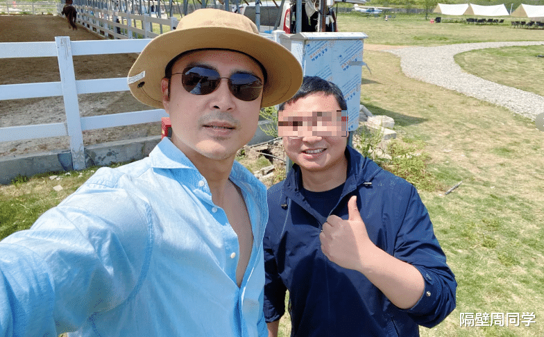 明道带着帽子墨镜,网友说他非常亲和,帮忙拿手机合影,真的是一点都没变。