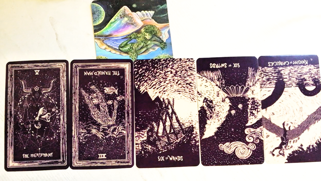 然后呢,圣杯六逆位,这牌有点不开心呀,一个温室里的花朵被风霜摧残了,也象征你们的爱情就像温室里的脆弱花朵,需要被呵护,需要一个特定的环境,特定的时空,特定的交集,你们俩的关系不是全天候的,必须得在一个区间内维持才行。