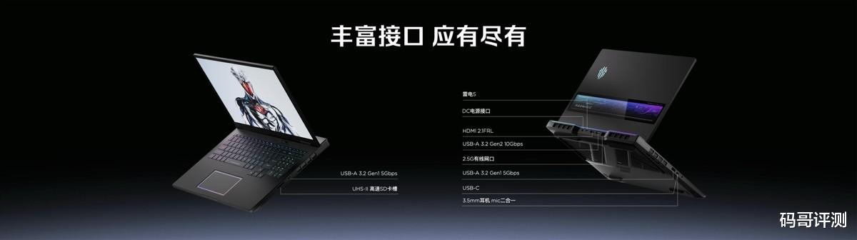 红魔游戏本16 PRO配备全场景接口,无需依赖拓展坞,即可连接多种外设。配备雷电5接口,同时包含2.5G有线网口,网络传输稳定,适合对网速要求高的在线游戏、直播场景。搭载HDMI 2.1 FRL接口,可外接高刷新率显示器,打造多屏游戏或办公场景;配备3个USB-A接口,可同时连接键盘、鼠标、U盘、手柄等外设,无需频繁切换接口。