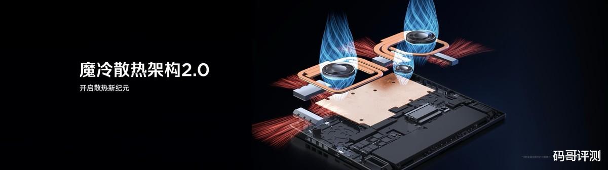红魔游戏本16 PRO升级魔冷散热架构2.0,从导热、散热多维度优化,确保高负载下机身不发烫、性能不降频。采用3D冰封复合式热管2.0,搭载4+2矩阵式排布的超宽高效热管+独家定制方形铜管,相比传统热管接触面积提升10%,导热效率提升30%,能将核心热量快速散出。配备超大 VC 均热板与超低热阻相变材料,均热能力强且轻薄省空间,持续性能提升 40%。另外还采用了2+1风扇布局的3D冰刃风扇,独家定制旋涡风扇与高强度复合扇叶,风压提升94.2%,整体风量提升61.5%,能快速将散热鳍片上的热量排出机身,避免热量堆积。