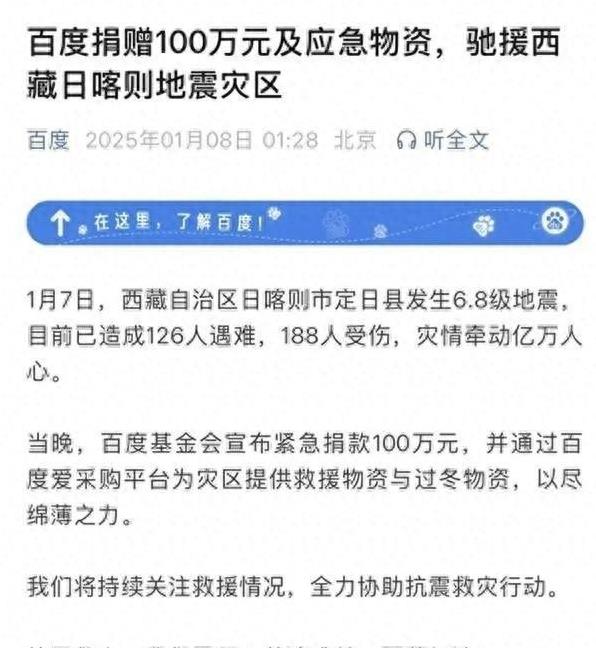 在西藏那片广袤而神秘的高原上,日喀则市定日县本应和往常一样,延续着宁静与祥和。一场 6.8 级的强震,如同一颗重磅炸弹,瞬间打破了这里的平静。“当时房子晃得特别厉害,根本站不稳,感觉整个世界都在崩塌。” 一位定日县的受灾群众回忆起地震发生时的场景,声音仍带着一丝颤抖。这场灾难,让 126 条生命永远定格,188 位伤者在病床上与伤痛顽强抗争,3600 多户家庭陷入困境。消息一经传出,便迅速牵动了全国人民的心,一场跨越地域与行业的爱心救援行动就此展开,而娱乐圈在这次行动中的表现,着实让人眼前一亮。