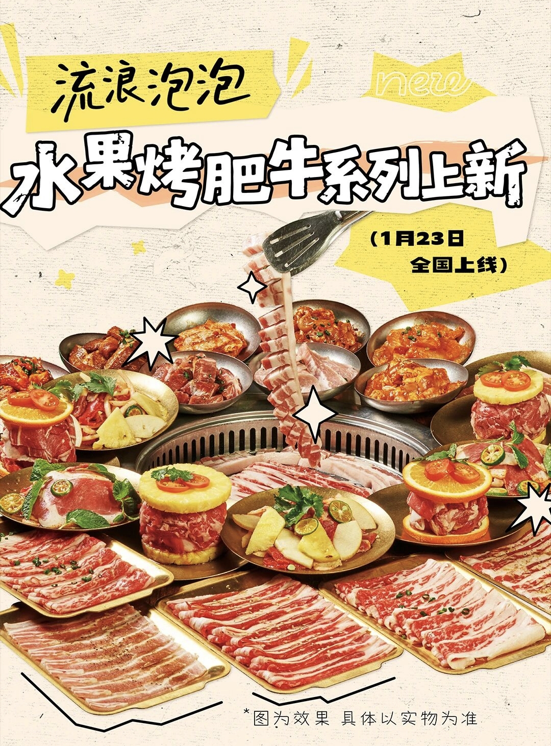 1月23日,流浪泡泡在全国门店同步推出水果烤肥牛系列新品,包括菠萝夹心肥牛、橙子夹心肥牛、水果什锦肥牛、青柠薄荷肥牛四款产品。这是继水果火锅系列之后,流浪泡泡在水果+肉类创新赛道上的又一次探索——当酸甜多汁的水果与鲜嫩的原切肥牛相遇,会碰撞出怎样的味觉体验?