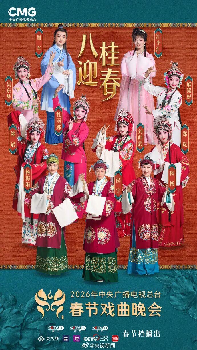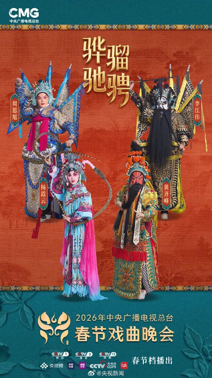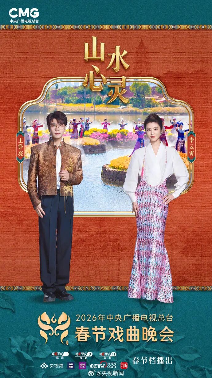2月18日,@央视新闻发文:马踏春来,看戏迎福! @陈少云-上海京剧院 @史依弘 @粤剧曾小敏 @陈丽君_点绛唇 @郑云龙DL @张智霖 @李云霄-lyx @张含韵 等与你相约 央视春节戏曲晚会 :《山水心灵》献国风新唱,《侠影流光》演光影江湖,《古村有戏》绘喜庆团圆,《墨客逍遥游》展诗乐戏韵……今晚八点档,锁定CCTV-1央视综合频道、CCTV-11戏曲频道,与山水共戏,迎和美之春。