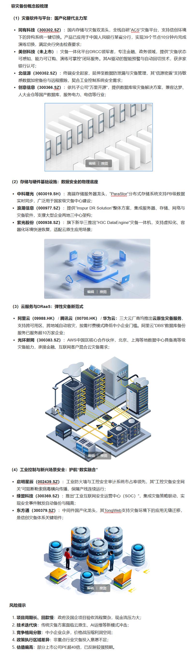 《金融数据中心容灾建设指引》(JR/T 0264—2024),中国人民银行,2024年7月南方财富网:《2026年容灾备份概念上市公司股票名单整理》,2026年1月11日IDC:《中国灾难恢复与业务连续性解决方案市场预测,2026–2030》Gartner:《Cost of Downtime for Enterprises》,2025年各上市公司公告及投资者互动平台