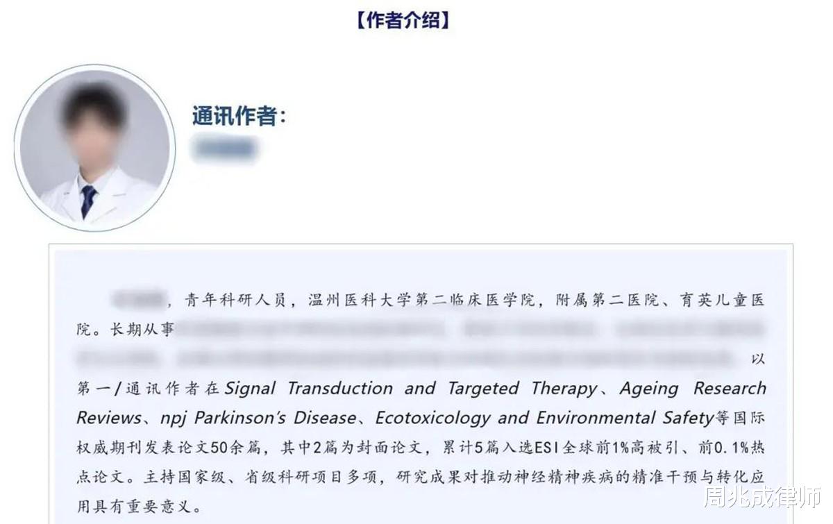医学本科生一年发40多篇SCI,平均9天一篇,比顶尖学者20年产出还多?温州医科大学这起“科研神话”刚曝光就炸了锅,一边要上课、泡临床实习,一边能横跨肿瘤、神经等多个领域写论文,这到底是天才特例,还是藏着学术不端的法律风险?大家好,我是周兆成,今天就聊聊本事件的核心问题!