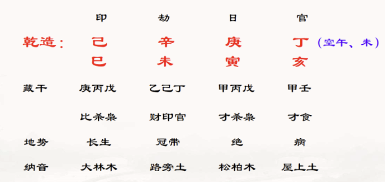 八字乾造:你生于己巳年、辛未月、庚寅日、丁亥时(日空:午未)。