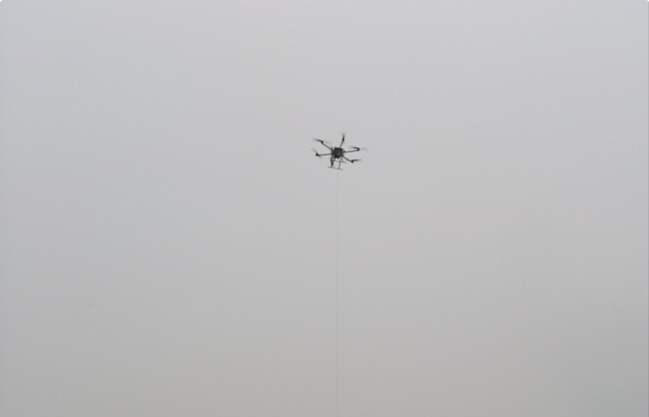 但在喧闹之外,一款不起眼的无人机正静置在某展台角落。它通过一根线缆与地面连接,貌不惊人,却能在空中持续悬停数小时——这就是当时初出茅庐的系留无人机系统。