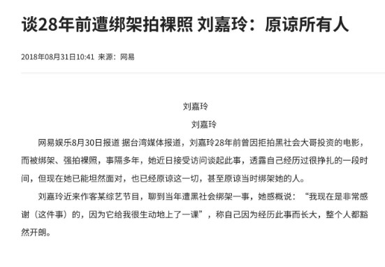 在2018年,刘嘉玲再次谈及此事时也直言“原谅了所有人”。