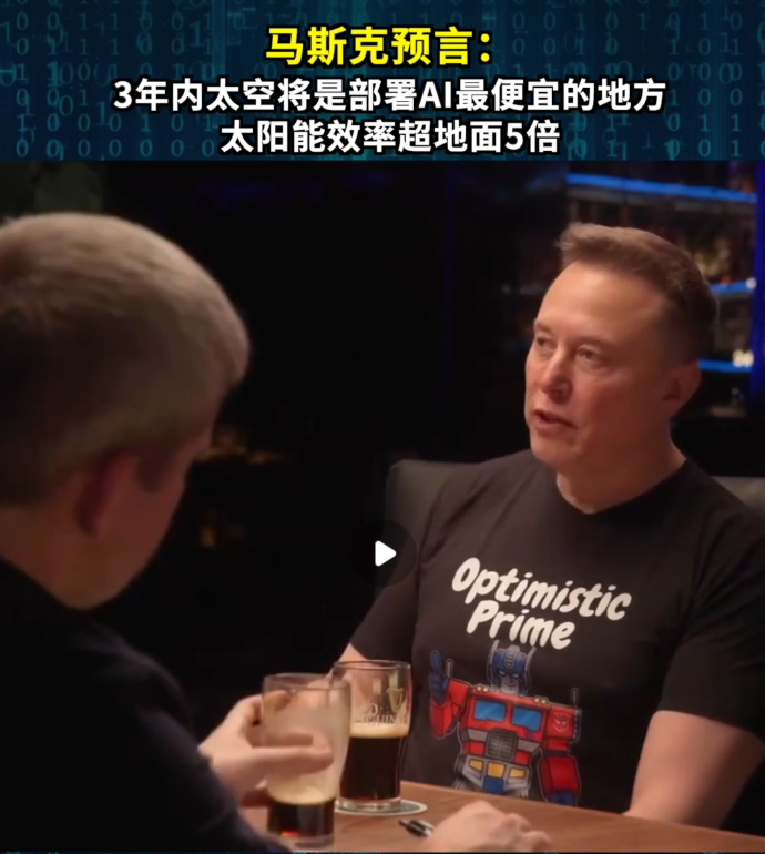马斯克作客科技访谈播客,对于近期引发热烈讨论的“太空数据中心”话题,马斯克给出了一个时间表,36个月内甚至30个月内,太空会是部署AI最便宜的地方。