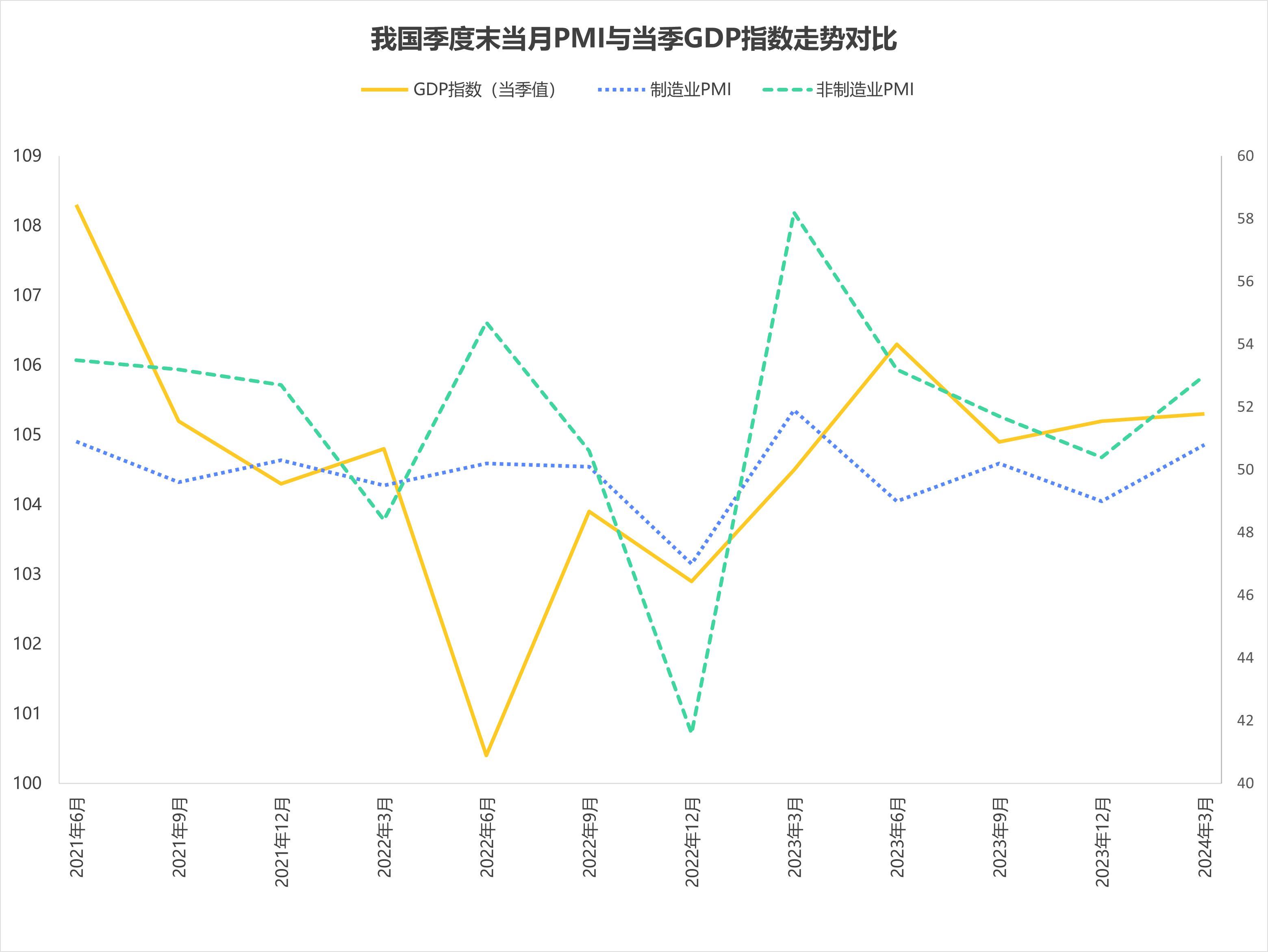 我国季度末当月PMI与当季GDP指数走势对比
