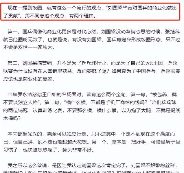 有网友表示,必须严查国乒内部以及刘国梁的不作为,说实话,刘国梁这波遭质疑也不亏,因为“饭圈乱象”实在是太可怕了。
