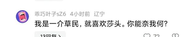 还有网友表示,自己就是一介草民,就是很喜欢莎头,你能奈我何,不仅如此,还有网友直言我一个80岁的老太,喜欢莎莎的可爱拼搏,说话懂道理,莎莎错在哪里?